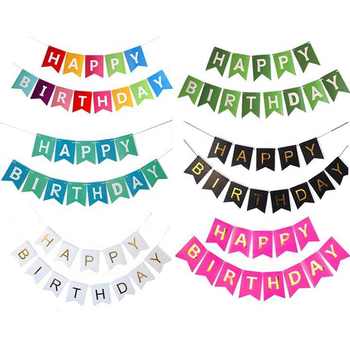 Venta al por mayor de decoración de fiesta de cumpleaños personalizada estampado dorado tirar bandera cartel de feliz cumpleaños