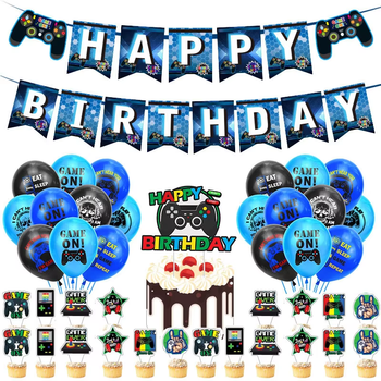 Juego de Niños de estilo azul en el tema Juego de fiesta de dibujos animados Vajilla Banner Globos de cumpleaños Decoración de fiesta de ducha infantil