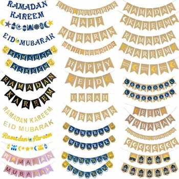 Eid מובארק באנר עם פנס הטירה הירח שלטי חגיגה למשוך דגל קיר הבית 2025 המפלגה אספקה